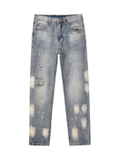 Knife Cut Ink Paint Straight Loose Jeans Men