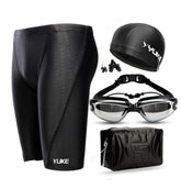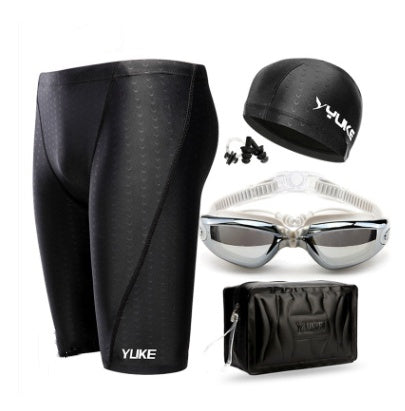 Swim Shorts Men's Five-speed Dry Waterproof Swimming Trunks Men's Large Size Leather Swimwear Men's Swimming Goggles Set
